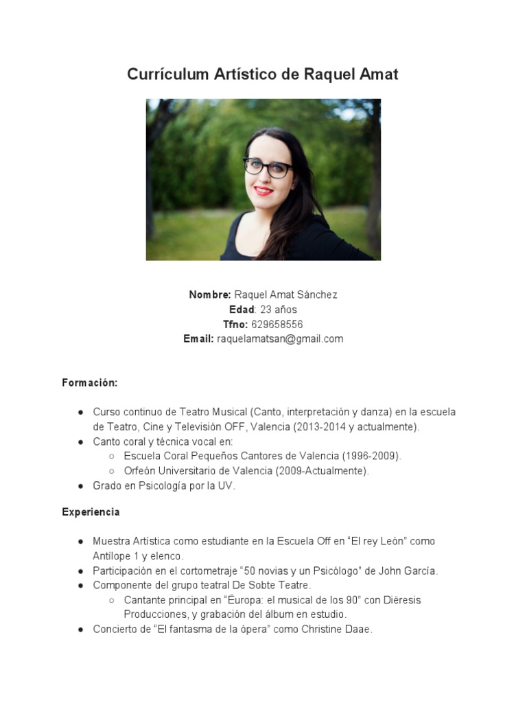 I ordered an argumentative essay and received a well-done academic level paper. Hace unos días charlando con un estudiante de conservatorio me preguntó cómo tenía que hacer su currículum vitae y si necesitaba una biografía artística. Modelos de CV de cantante.